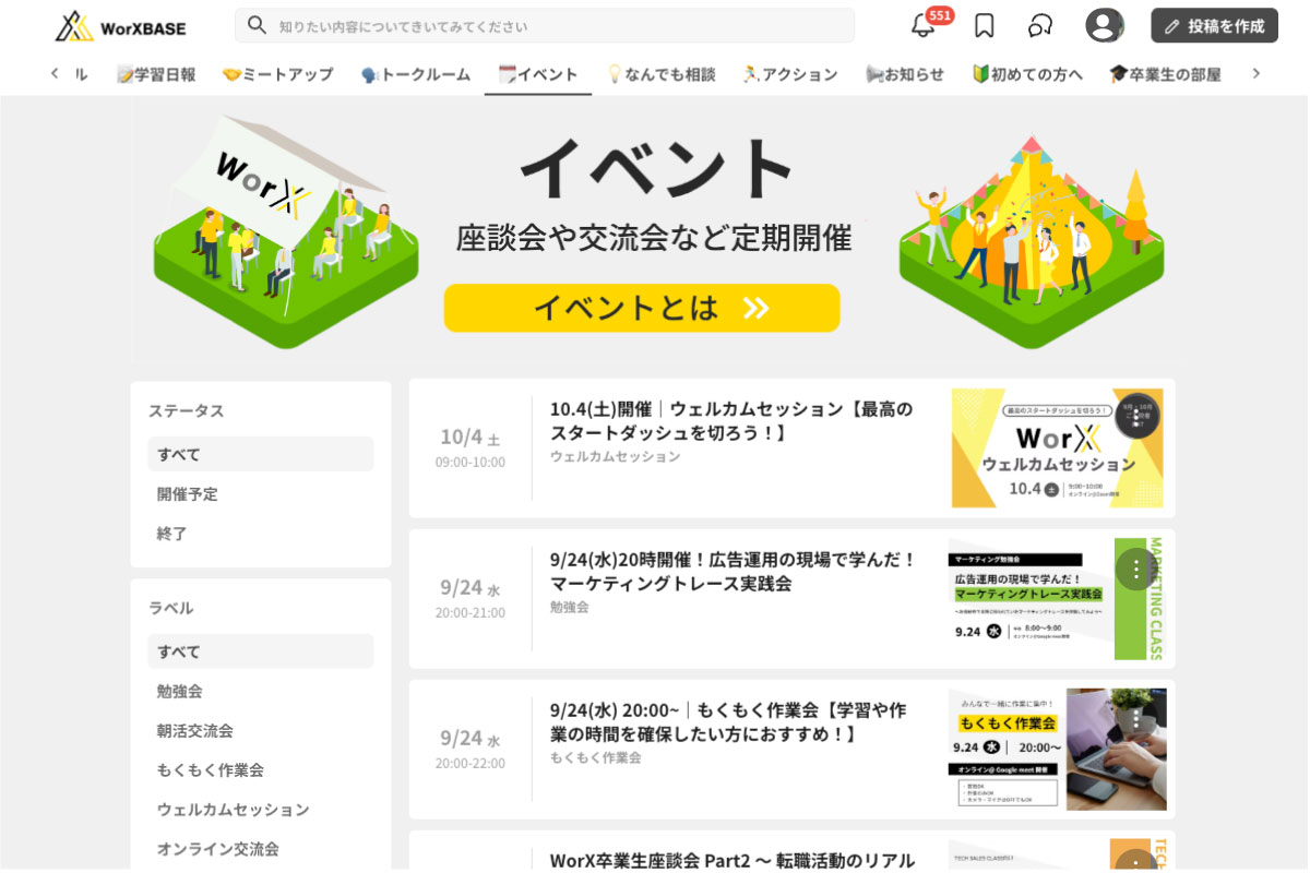 "WorXBASE限定のイベントを案内する場所です。